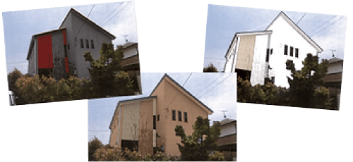 外壁の現状(目地・影)をリアルに表現し、塗料専用シートに実際の塗料を吹き付けた色見本「ペイントシート」を当てれば塗替え後のイメージがつき易く、失敗しない希望通りの色の塗替えがシミュレーションできるという画期的なシート。