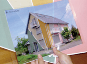 透メックスとはデジカメで物件の外観を撮影し、パソコン操作により外壁だけを透明にしたA4サイズのシートです。